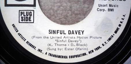 1.Sinful Davey(K.Thorne - D.Black) 2:22 Sung by Ester Ofarim