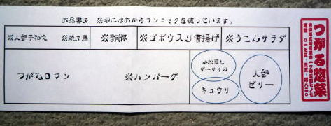 津軽健康モリモリ弁当ということで上記お品書きのようにおからとコンニャクを使用した