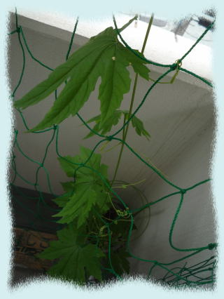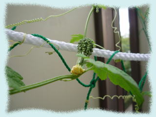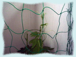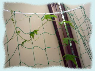 それとベランダのゴーヤがかわいそうなのでさらに網を張ってつるが絡めるやうに