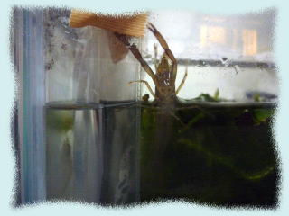 なんとか抜け出そうとするテナガエビ。