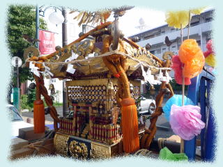 そうそう途中でお神輿とかの行事があったので写真を撮ったりしましてん。