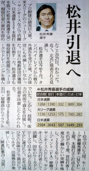 松井秀樹選手が引退しました。お疲れ様でした。