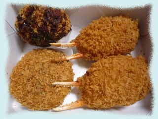 キャベツコロッケ。あとはかにつめフライ?なんとかカツ?忘れた。