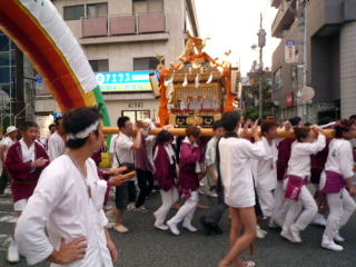 夕方近くになってちょっとは表通りまで出てみました。丁度御神輿を担いでおりました。