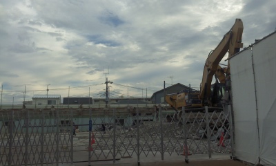 ↓ひょうたん池に行く途中で今は無き旧小松原高校の校舎解体現場を携帯で撮影しました。(デジカメ忘れた)