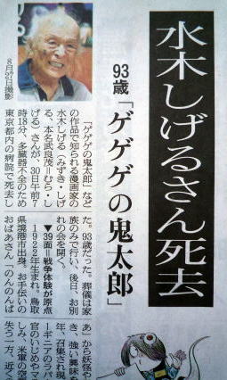 遅れましたが、水木しげる先生のご冥福をお祈りいたします。