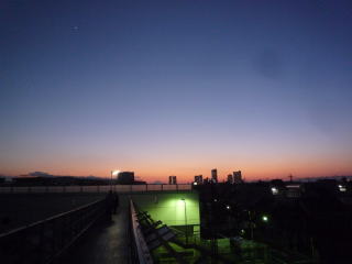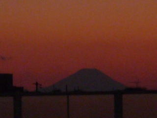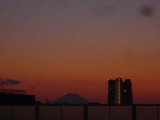 行も帰りも歩いて行ったのですが、行は多少もやっていて富士山が観えなかったのですが、帰りは綺麗に夕闇に観ることができました。