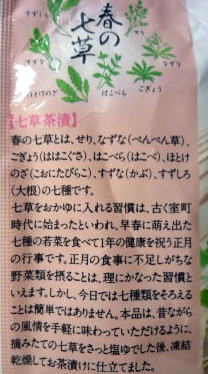 七草粥といふことですが、私は面倒なので市販のお茶漬けで毎年済ませております。