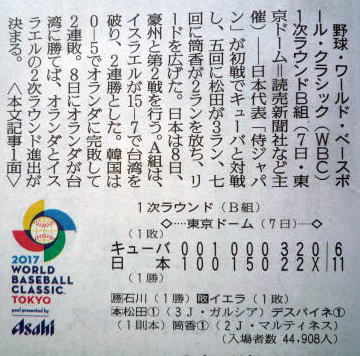この辺にWBCの1次ラウンド2017年3月7日(火)〜3月11日(土)の記事を載せとく予定。(単なる後で振り返り用。振り返った事ないけど)