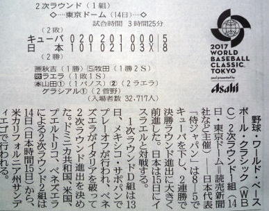 今日のWBCはキューバとの試合でしたね。勝ててよかったです。