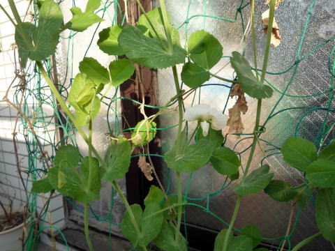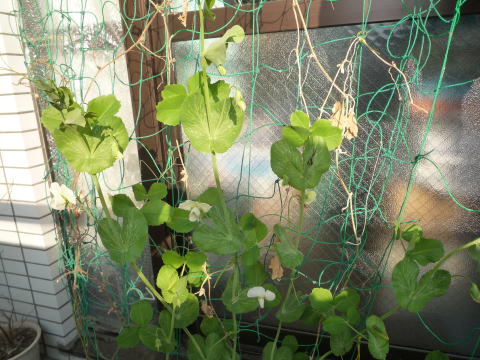昨年11月ぐらいに蒔きましたつる有スナップといふえんどう豆が現在順調に育っております。