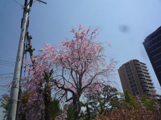 忘れてた。銀行の帰りに撮ったしだれ桜?ど田舎なのに高層マンションが多々あります。
