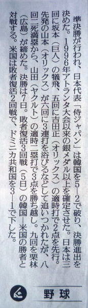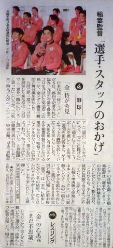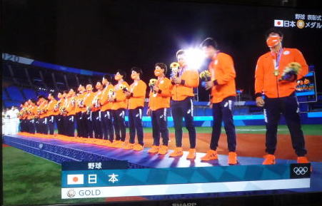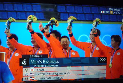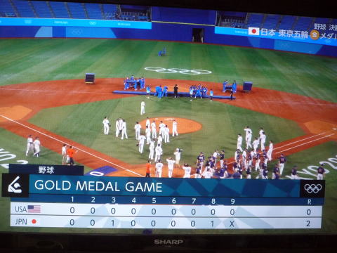 ↓野球で日本が悲願の金メダル! 日本2-0アメリカ。