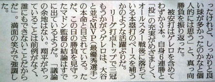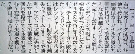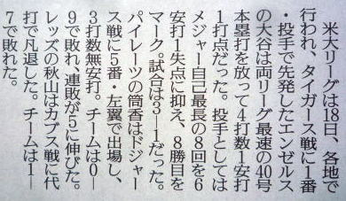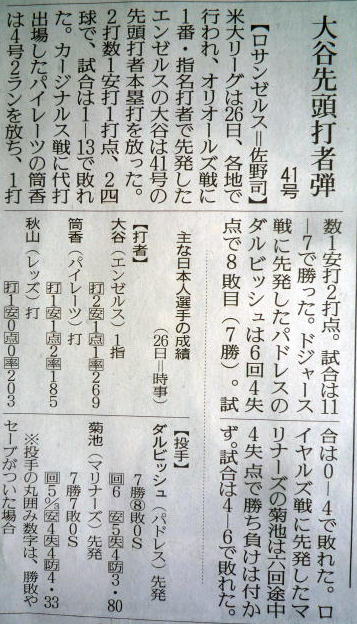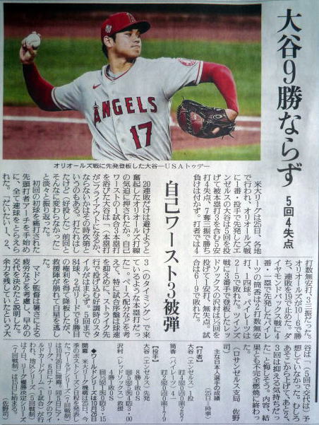 ↓大谷前日登板の記事。