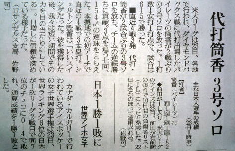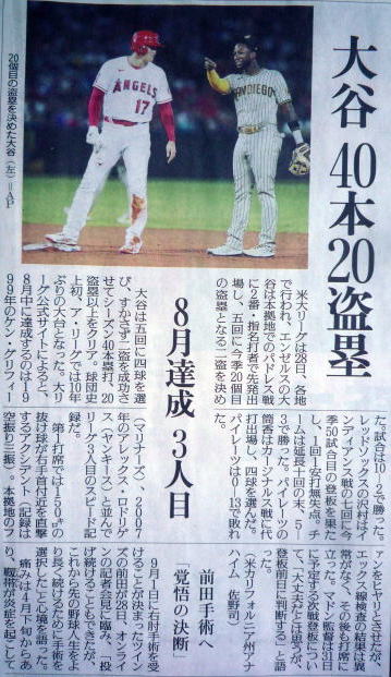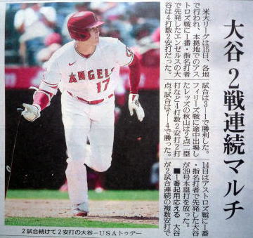 ↓Shohei Ohtani (sports section of the newspaper).