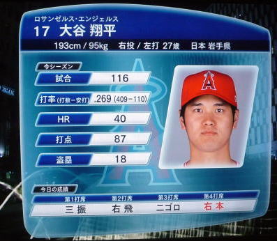 ↓大谷がシーズン40本塁打、20盗塁以上を達成!