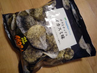 ↓久々に食したポテトチップス イカスミ味。