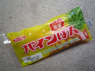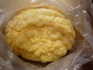 ↓昨日スーパーで買ったパインぱんを食べた。