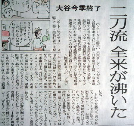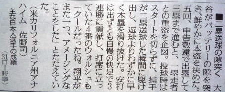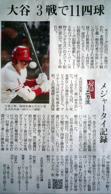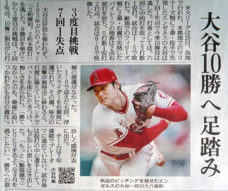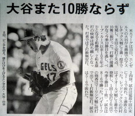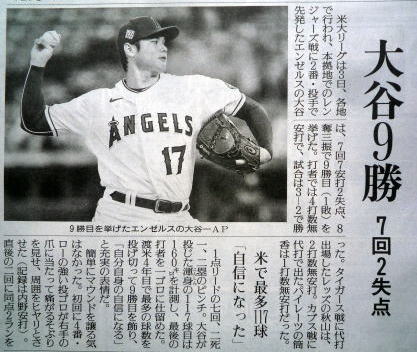 大谷(エンゼルス)9勝の記事。
