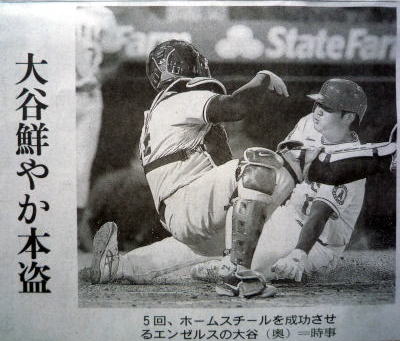 ↓大谷がホームスチール!この日2盗塁。