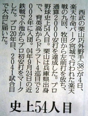 栗山(西武)が2000安打!