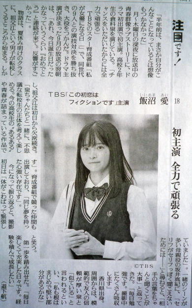 ↓「私が女優になる日」を観ていたのでなんとなく。飯沼愛。