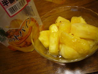 いつもは買えない(貧乏なので)カットパイナップルが