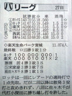 感想としては日本シリーズで1勝ぐらいできるチームが出て欲しい。