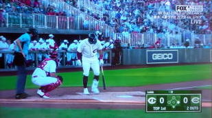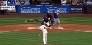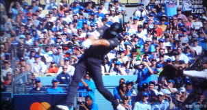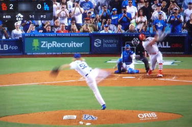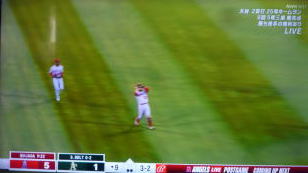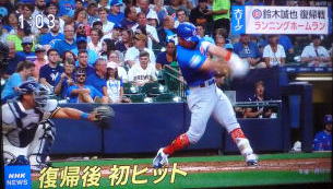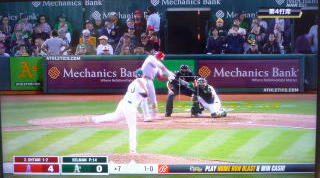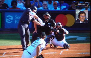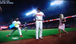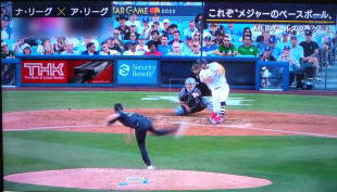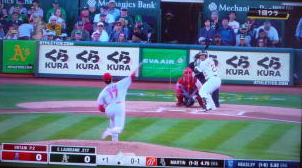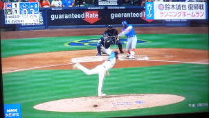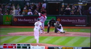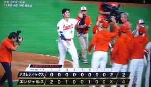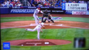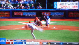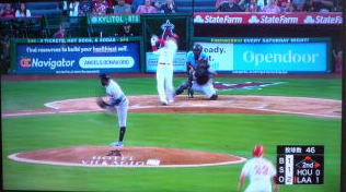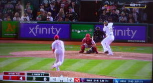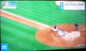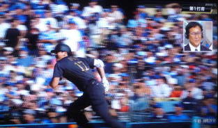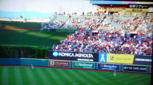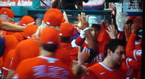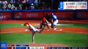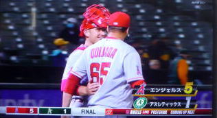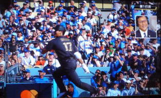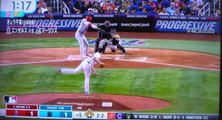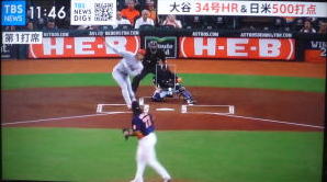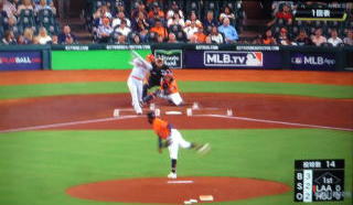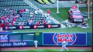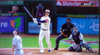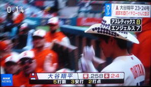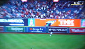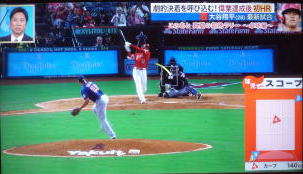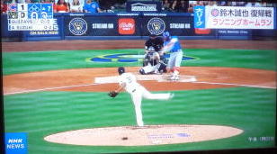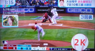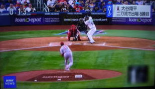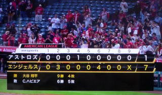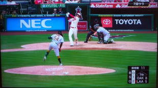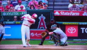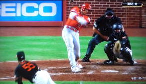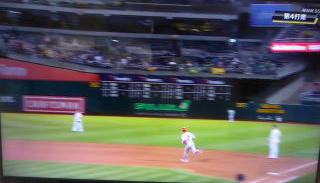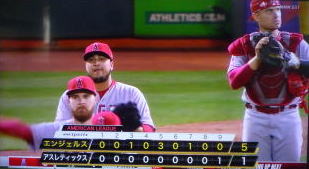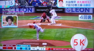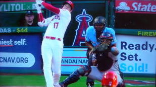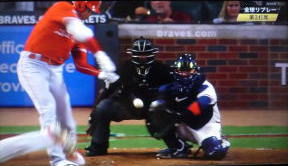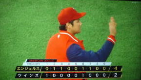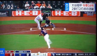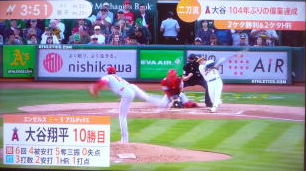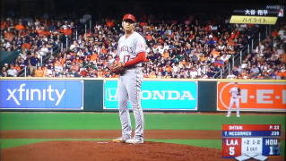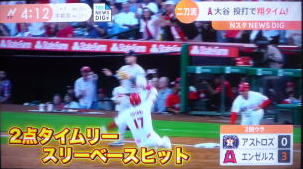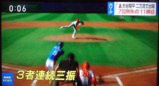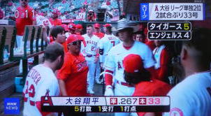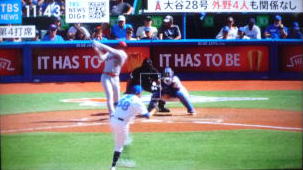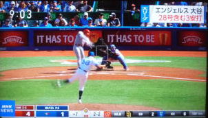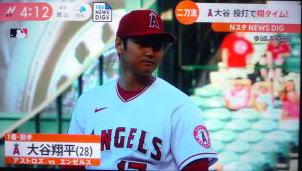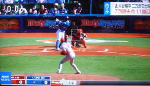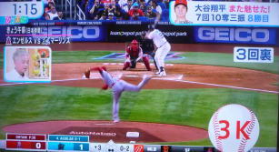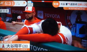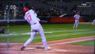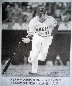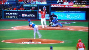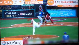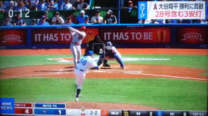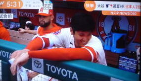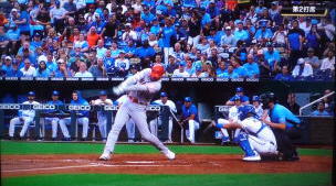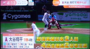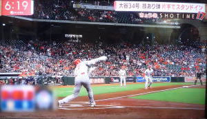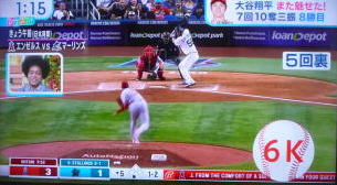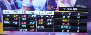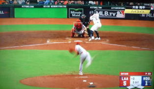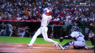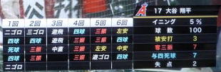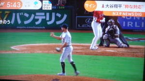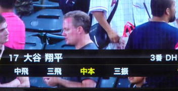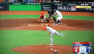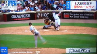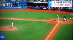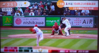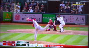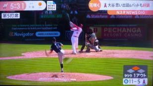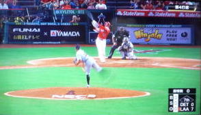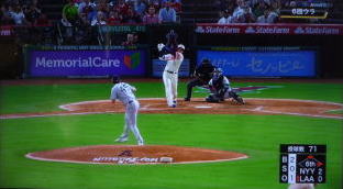 ↓大谷がヒットを打たれた瞬間...。