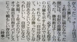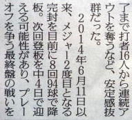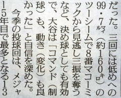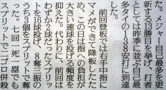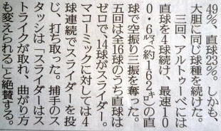 惜しくもノーノーは逃しましたが