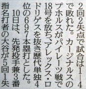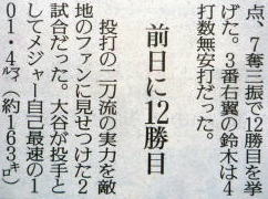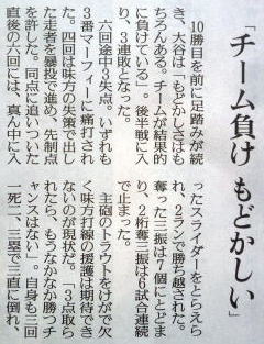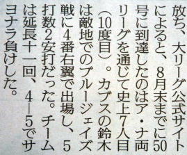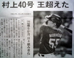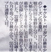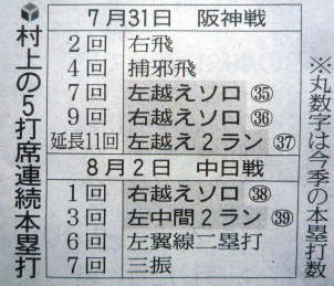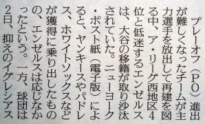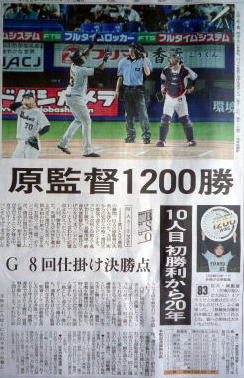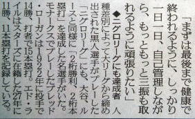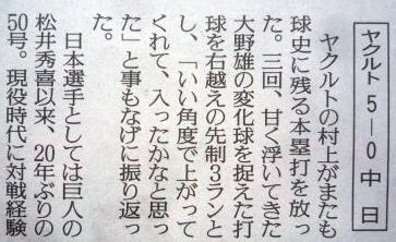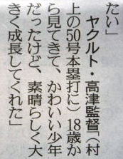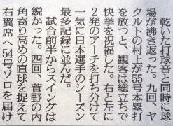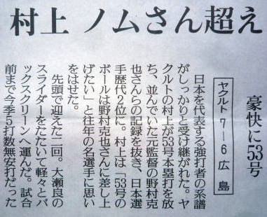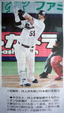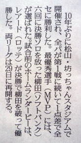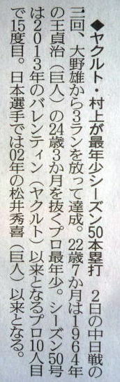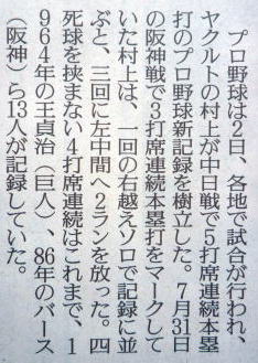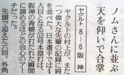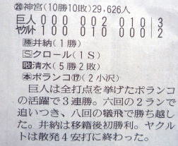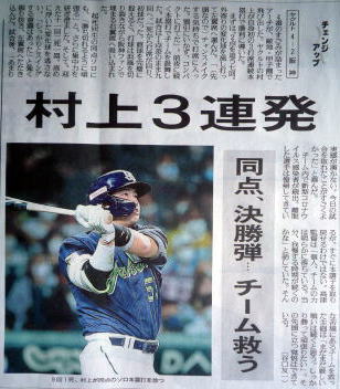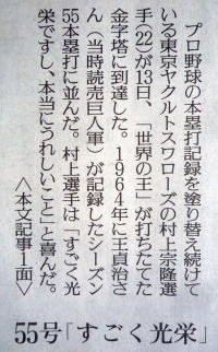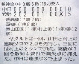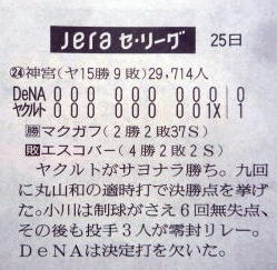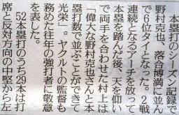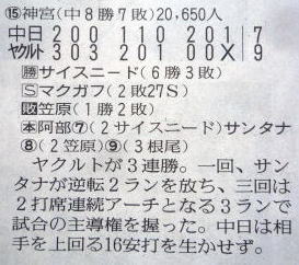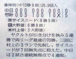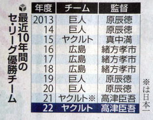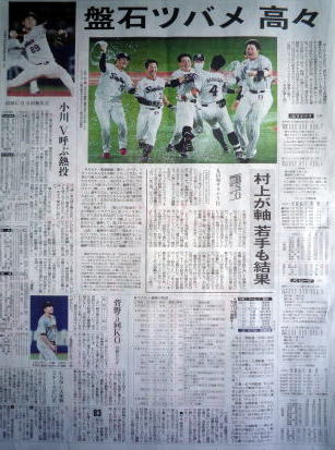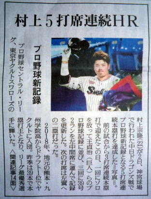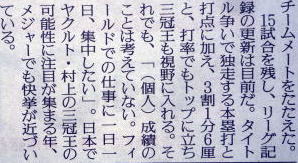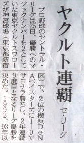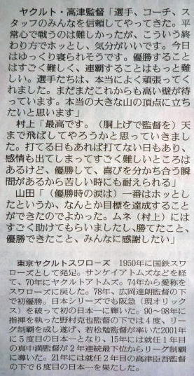 ヤクルトが優勝の記事。