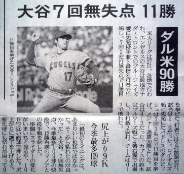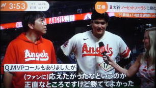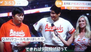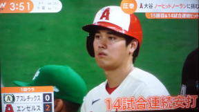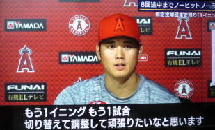 大谷が8回の2アウトまでノーヒットノーラン!