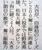 大谷(エンゼルス)が200奪三振!!!