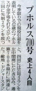 プホルスが通算700号ホームラン!!!