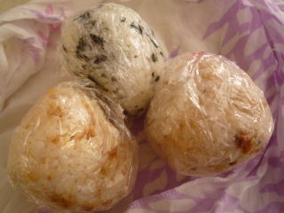 昼食は持ってきたおにぎり(↓)と