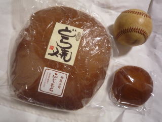↓普通のどら焼きと野球の硬式