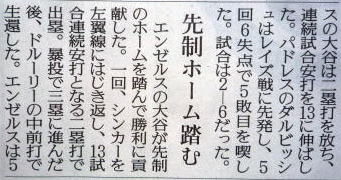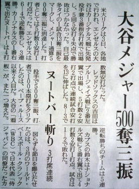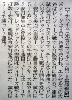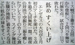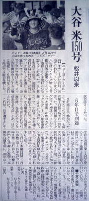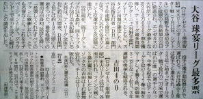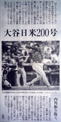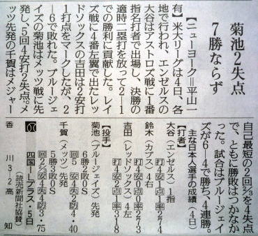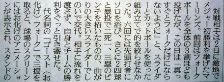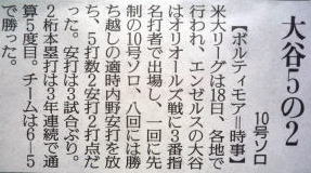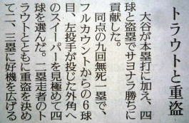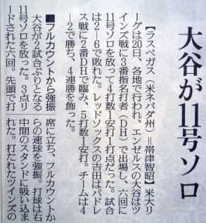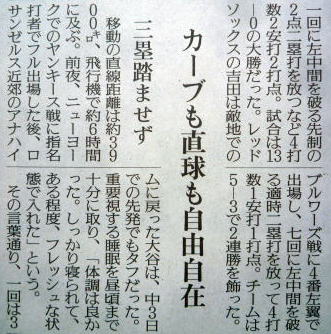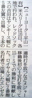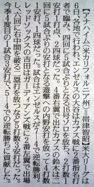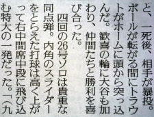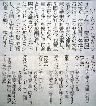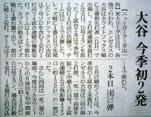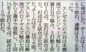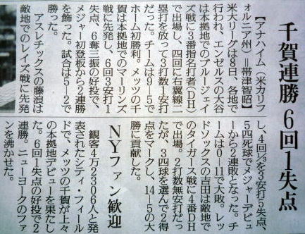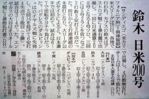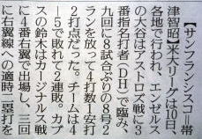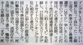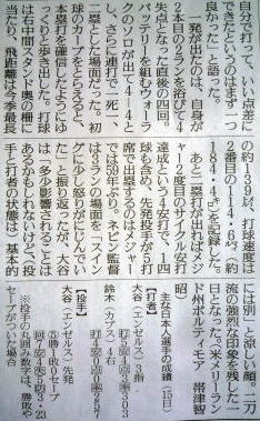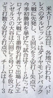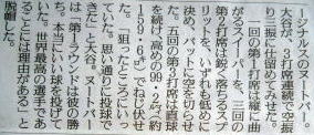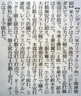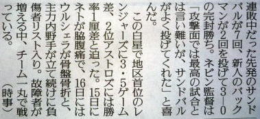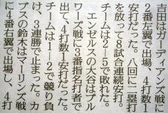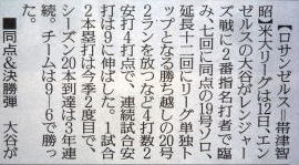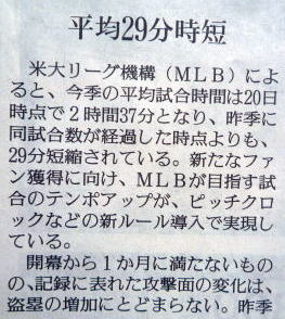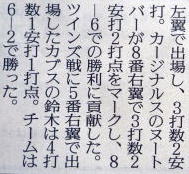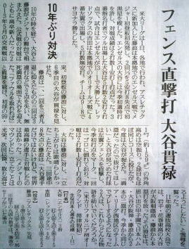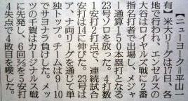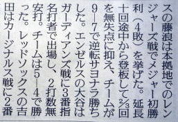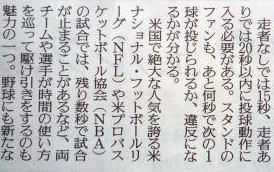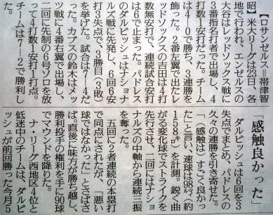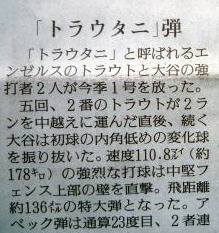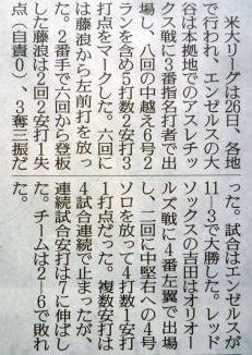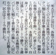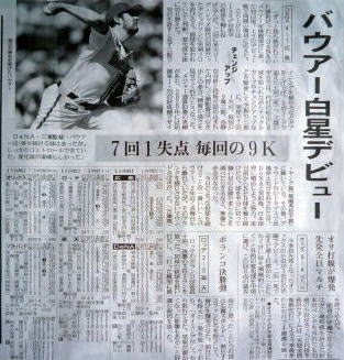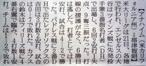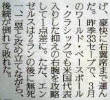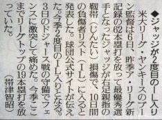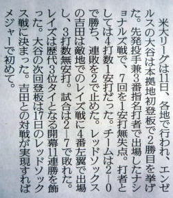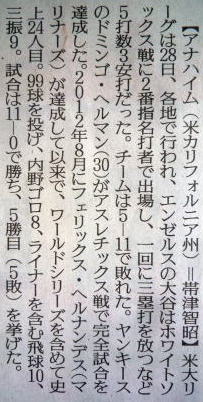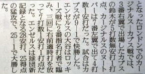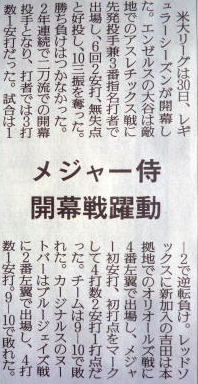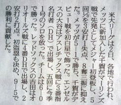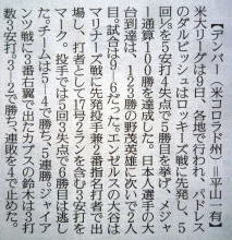メジャーリーグ新聞記事。