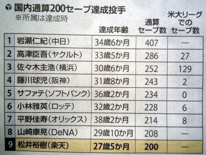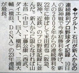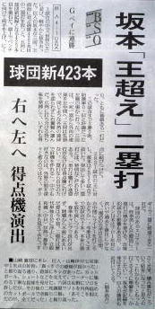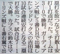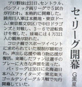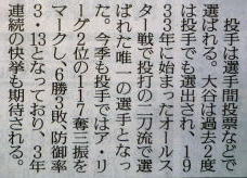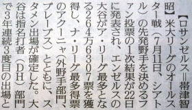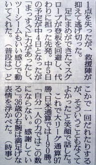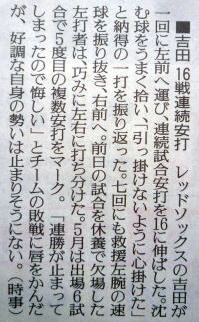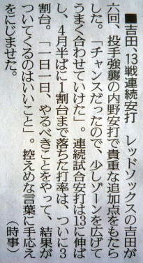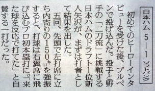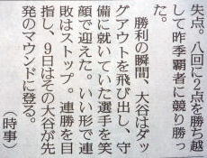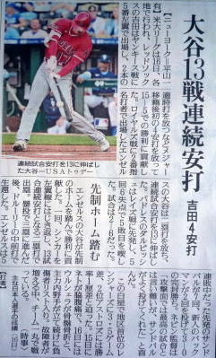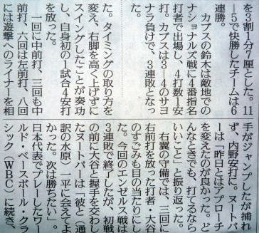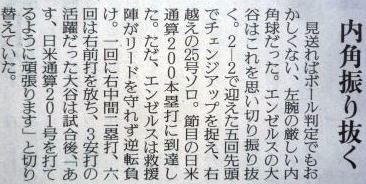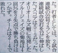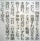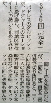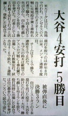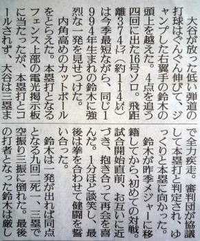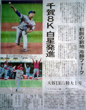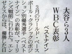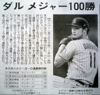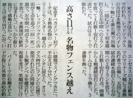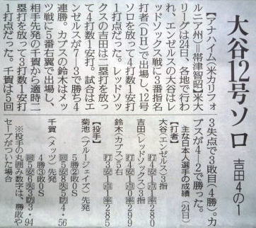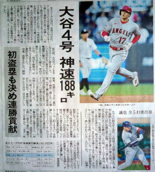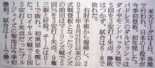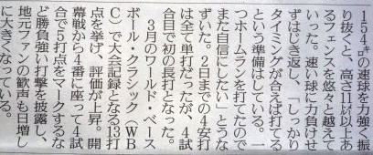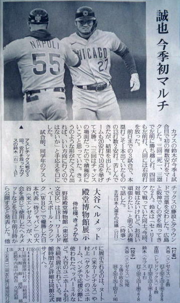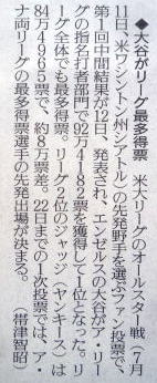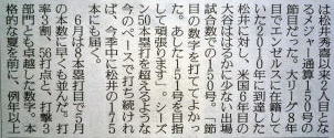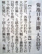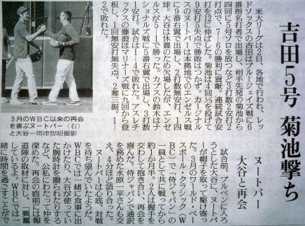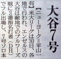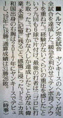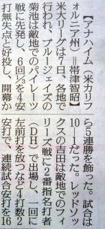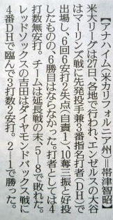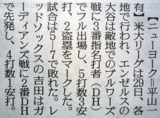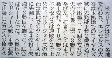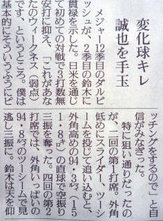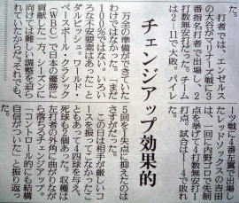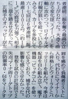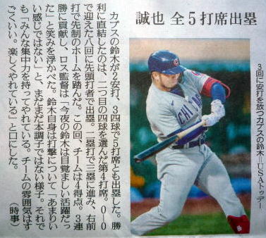 メジャーリーグ新聞記事。