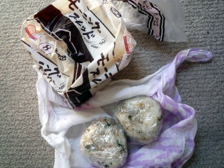 おにぎり2個と8枚切り食パンの