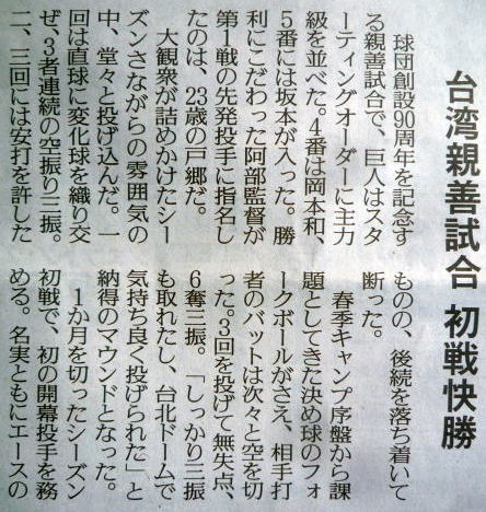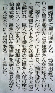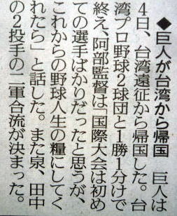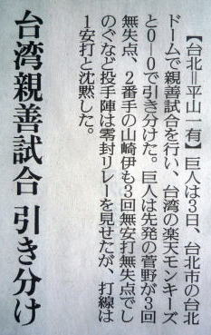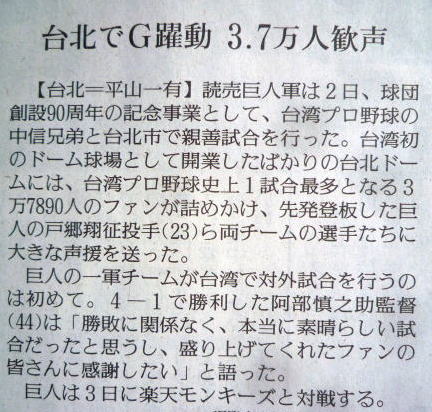 巨人の台湾遠征親善試合。