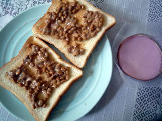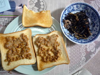 食パン2枚をトーストして納豆を