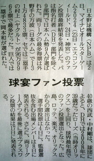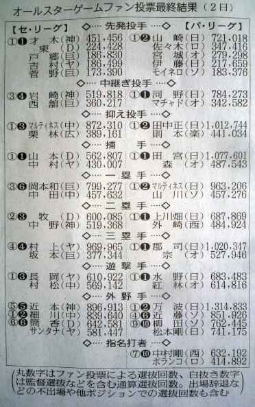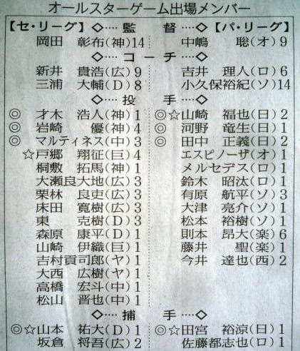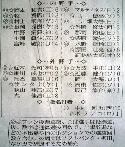 (ヤクルト)とかが選ばれないと