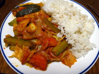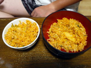 昼に皆にキムチ入りチャーハン