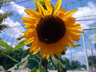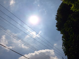 暑い中汗をたらしながら太陽の下