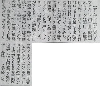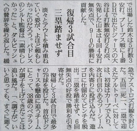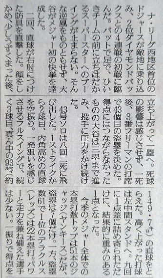 久々試合の大谷(ドジャース)。