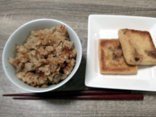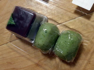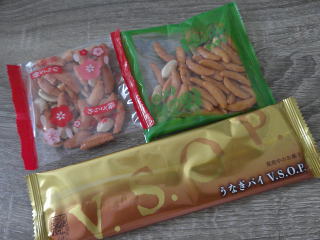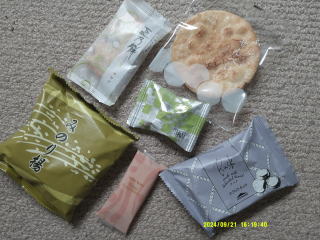 道明寺2個、ごぼうあられ。
