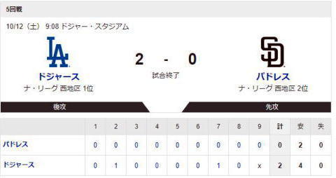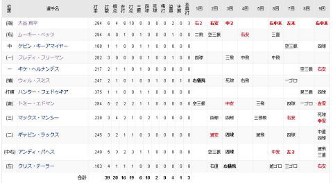 1回表ドジャースは