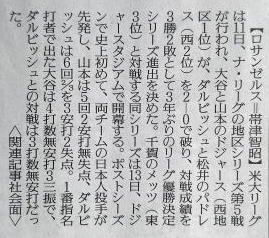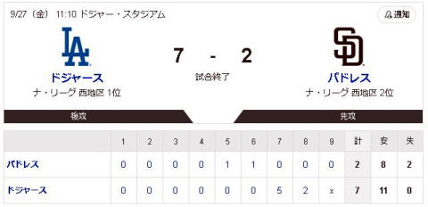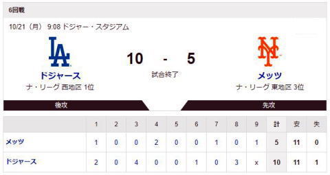 ドジャースが逆転勝利で