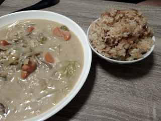 キャベツを煮込んで台湾黒豆乳と