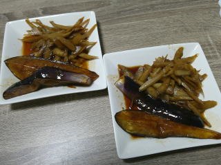 総菜2種を摘まませて